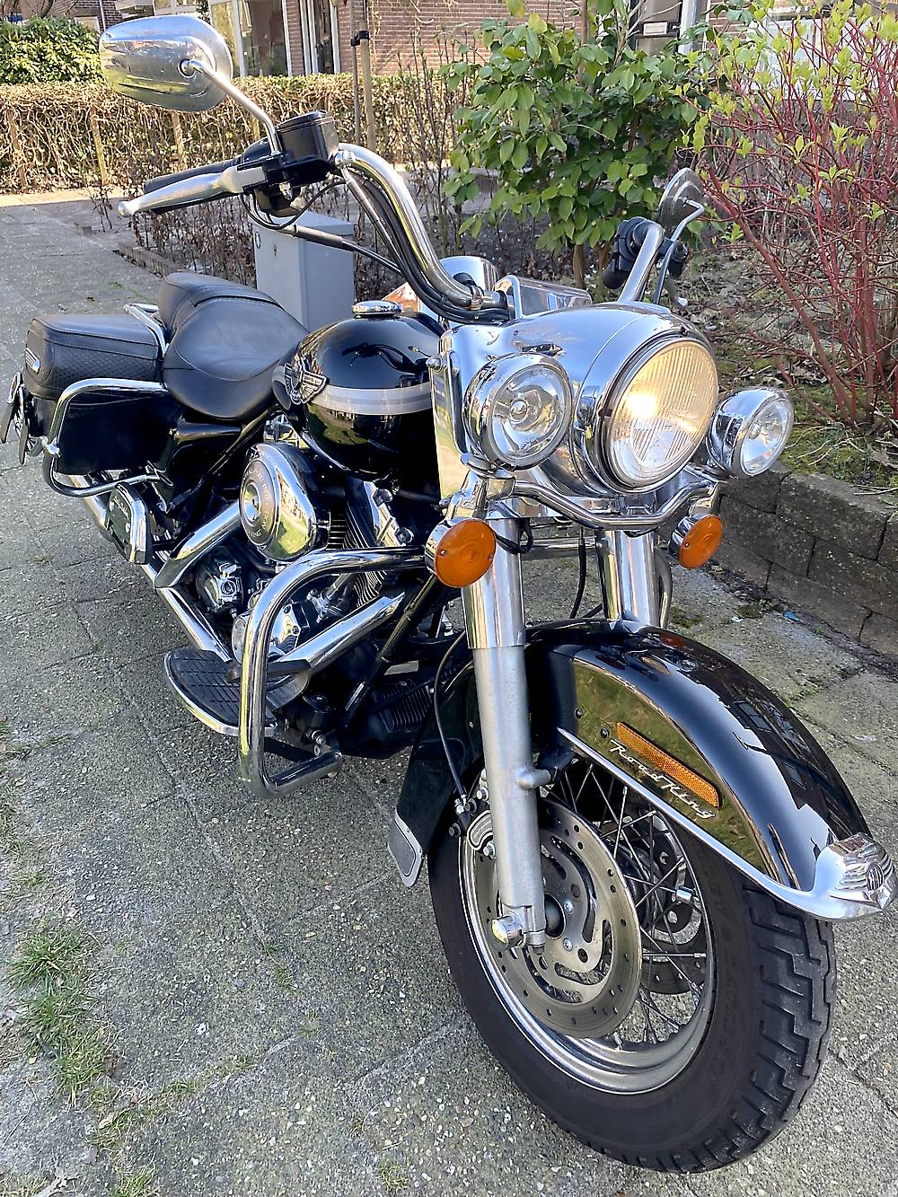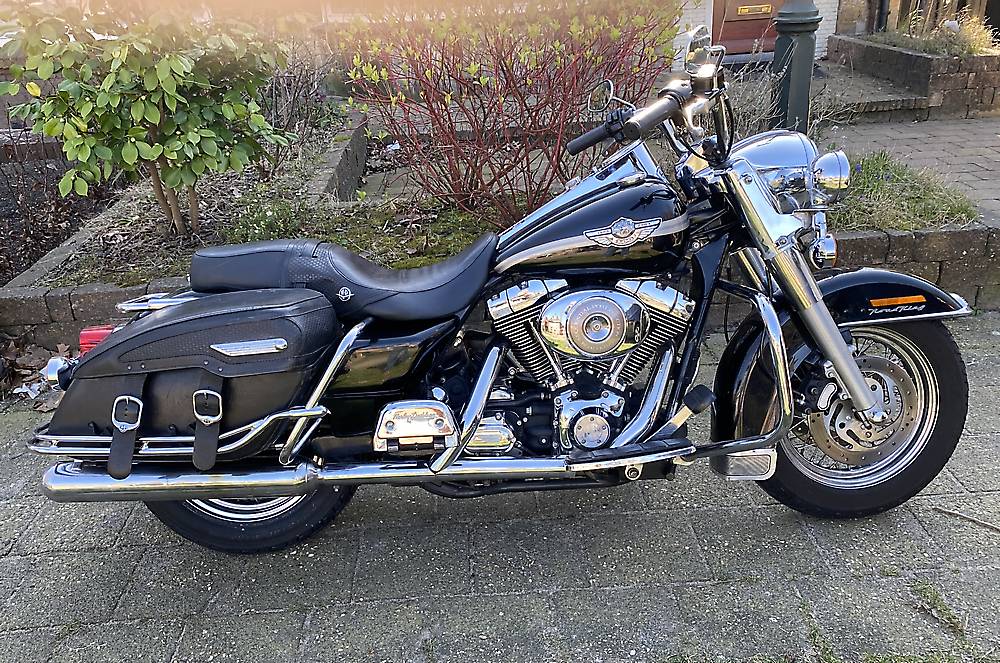 | Eindelijk besloten dat de Liberator weg mocht naar een liefhebber, ik wist dat ik er toch niet mee de weg op ging. En dus rondgekeken naar een vervanger. Op zoek naar een Harley, iets anders niet. Er moest wat aan gedaan kunnen worden. Bijvoorbeeld wat onderhoud en wat opknappen. Hij moest ook nog betaalbaar zijn. Ik heb zo mijn adressen om te gaan kijken en zo kwam ik weer terecht bij CCR in Hasselt (bij Zwolle). Thijs heeft altijd wel iets staan wat een beetje in mijn wensenpakketje past en hij snapt het. Heb al verschillende motoren bij hem gekocht. Deze FLHR is misschien "iets" te groot voor een mannetje van 76 maar er is genoeg te poetsen enzo. | |