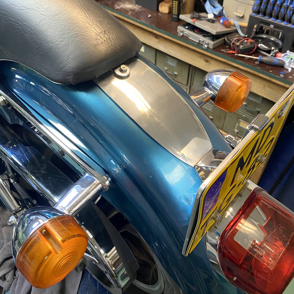 gemaakt van gepolijst aluminium. Het hele spatbord over spuiten lijkt