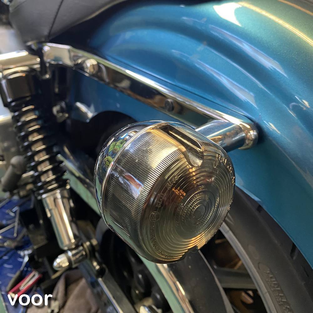 Nog wat originele oranje lampjes er op. Ook kan hij nog wat chroom