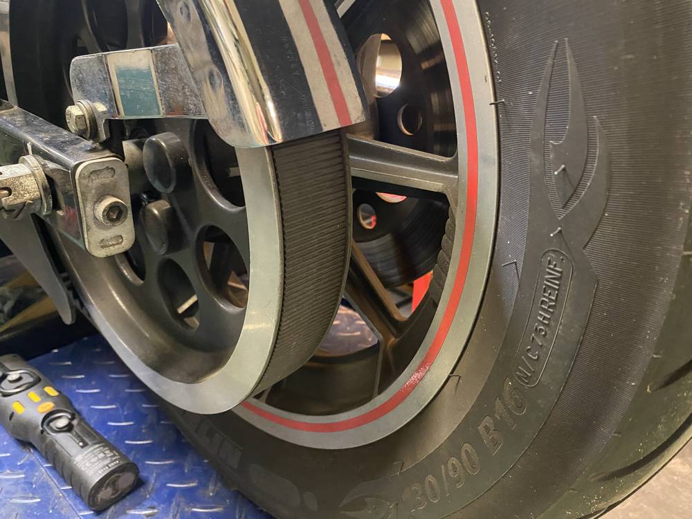 lichtmetalen velgen, een 19-inch voorwiel, een 16-inch achterwiel en