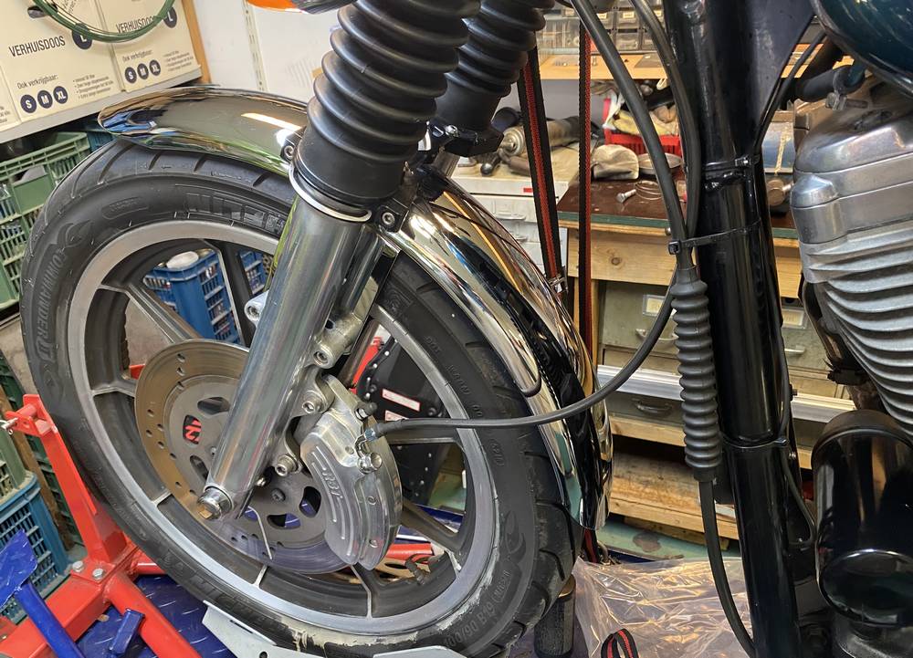 De tank verraadt dat het een grotere motor is dan een Sportster. Met