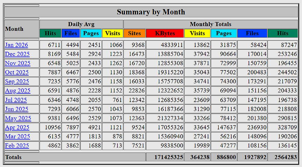 site averages over 30,000 visitors a month. I don't get many responses,