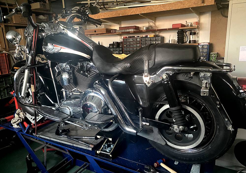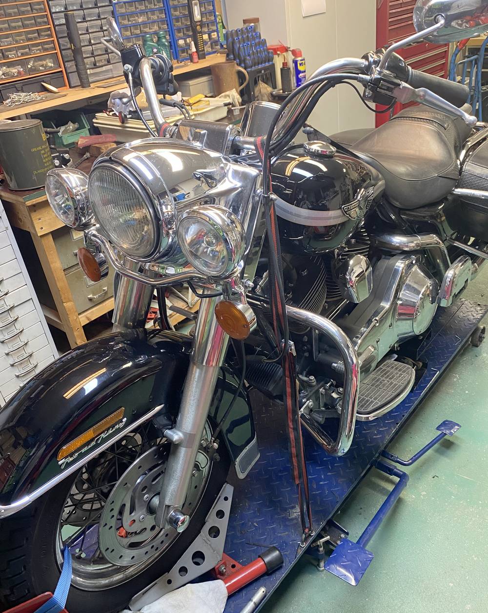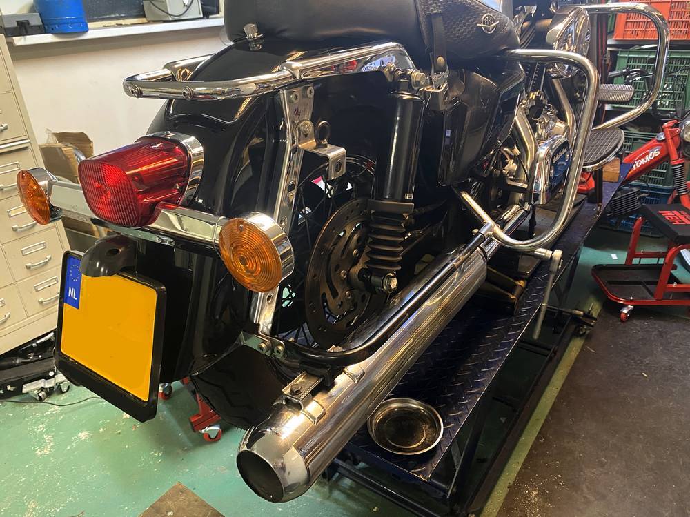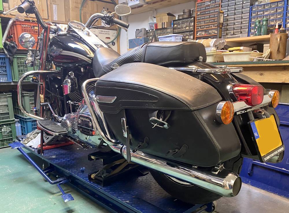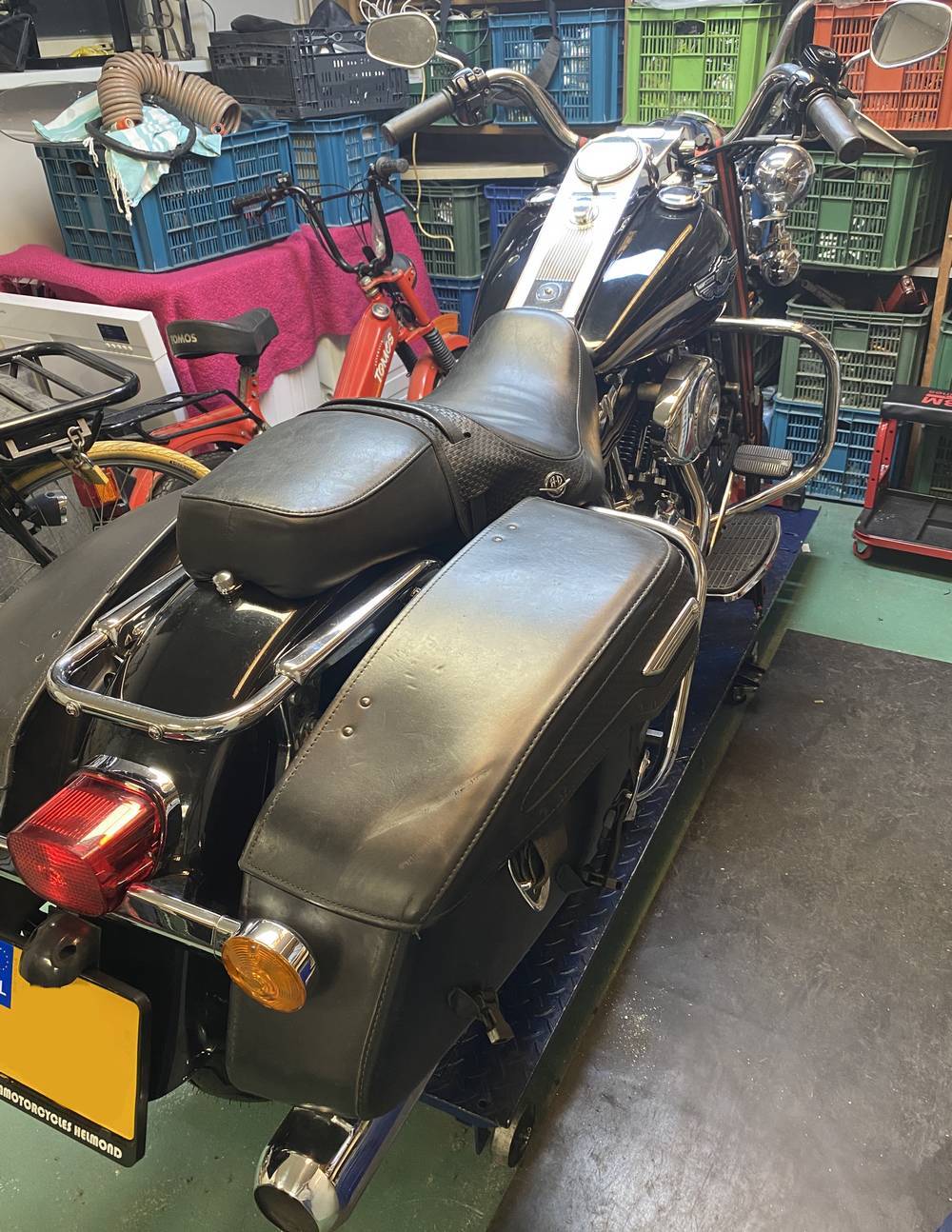 | Een beetje geschiedenis kun je bij mij altijd wel kwijt. Hij in juli 2003 op kenteken gezet en dat betekend dat het een originele dealer motor is en geen (schade) import. De speurtocht naar het verleden begon bij de kentekenplaat. Daar staat DCA Motorcycles onder. De eerste en enige eigenaar is daar bekend. Op 8-5-2019 is hij bij DCA geweest voor een upgrade van de nokkenassenspanners, oliepomp met een verhoogde capaciteit en nog wat leuke dingen en dat is goed nieuws. Van Central Harley-Davidson kreeg ik de onderhoudslijst vanaf februari 2017 bij kilometerstand 98.039 tot en met 150.176 in juli 2023, waar hij de laatst bekende onderhoudsbeurt kreeg. Daarna is hij bij South-East Motorcycles ingeruild en daarna bij CCR in Hasselt terecht gekomen met km-stand 152.106. Daar kreeg hij de nodige tlc. Conclusie is dat een beurtje na 1930 km nog niet echt nodig is. Had ik net alles in huis gehaald. | |