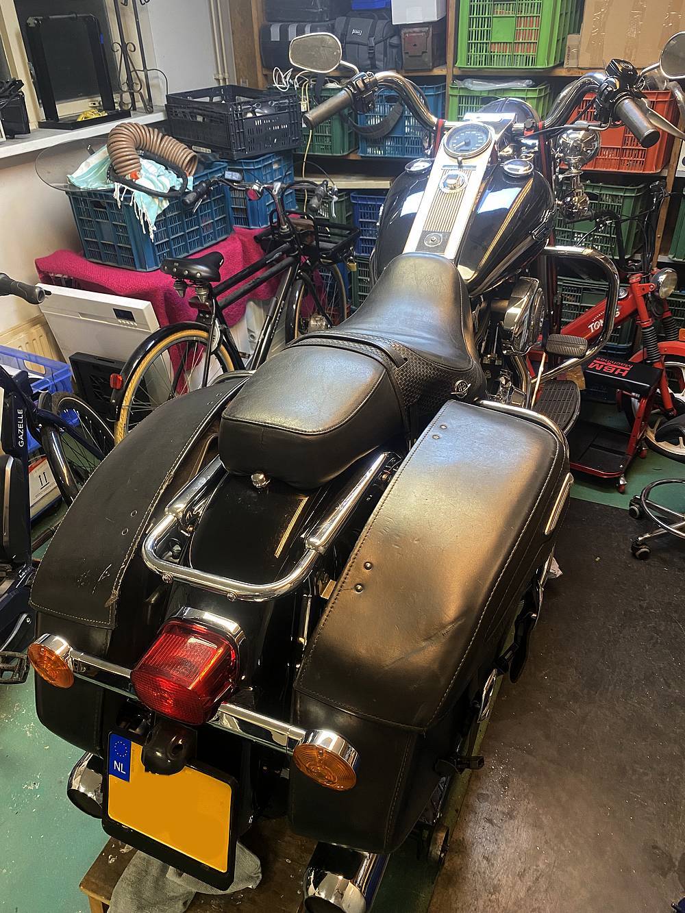 | Eindelijk besloten dat de Liberator weg mocht naar een liefhebber, ik wist dat ik er toch niet mee de weg op ging. En dus rondgekeken naar een vervanger. Op zoek naar een Harley, iets anders niet. Er moest wat aan gedaan kunnen worden. Bijvoorbeeld wat onderhoud en wat opknappen. Hij moest ook nog betaalbaar zijn. Ik heb zo mijn adressen om te gaan kijken en zo kwam ik weer terecht bij CCR in Hasselt (bij Zwolle). Thijs heeft altijd wel iets staan wat een beetje in mijn wensenpakketje past en hij snapt het. Heb al verschillende motoren bij hem gekocht. Deze FLHR is misschien "iets" te groot voor een mannetje van 76 maar er is genoeg te poetsen enzo. | |