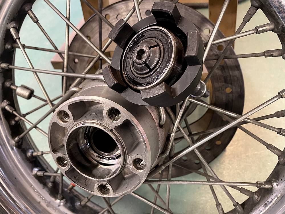 | Dan zet je ze er even in en hoppa, nee dus. Setje werkte niet zoals op de leuke filmpjes te zien was. Alles uit de kast gehaald maar de lagers bleven lekker zitten waar ze zaten. Na poging 6 lukte het uiteindelijk wel. Ik heb de naaf flink verwarmd met een verstripper en dat werkte wel na eerst een nachtje in de WD40. | |