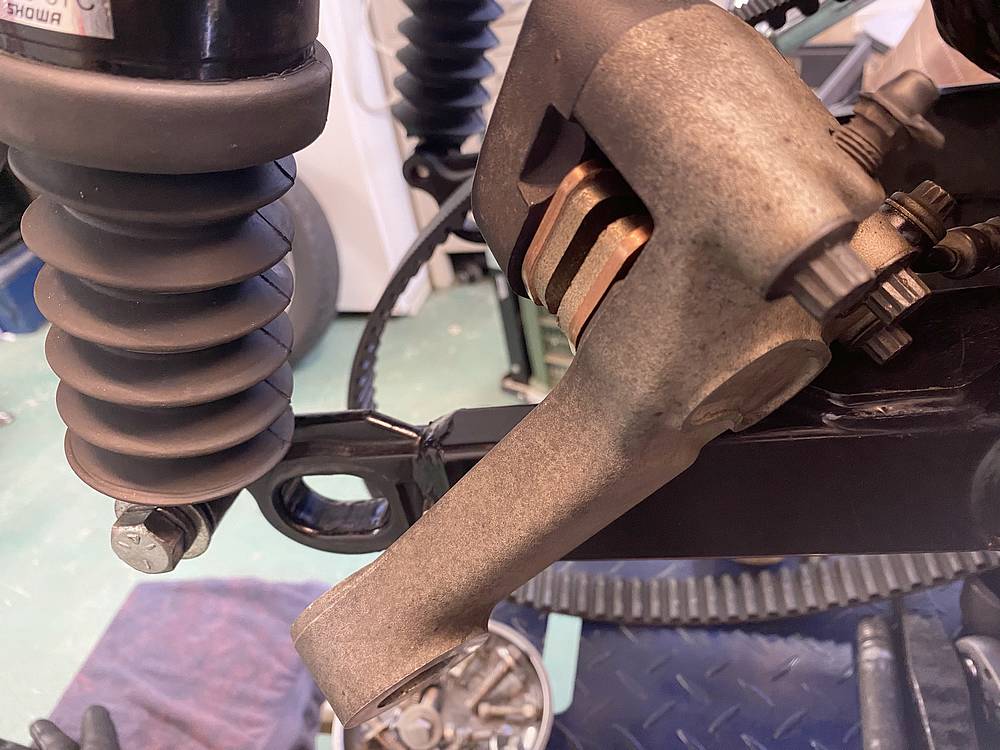 | Die stofhoezen uit China gingen er ook op. Ik heb het maar ruim aangepakt door beide dempers en beugels te demonteren. Die moesten er toch vanaf omdat het achterwiel er uit moet voor een nieuwe band en zo heb ik heel wat meer speelruimte. | |