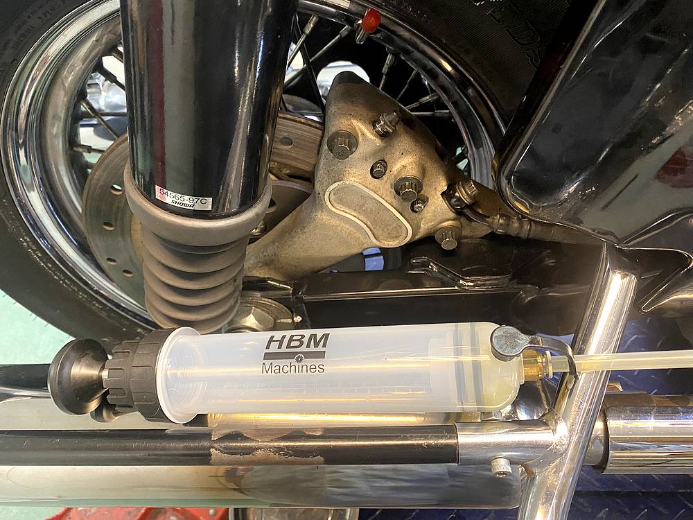 | Op naar de voorkant. Daar ga ik met dezelfde spuit de voorvorkolie verversen zonder de hele koplamp te slopen. | |
