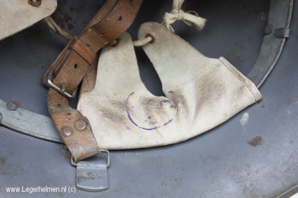 OPL-eenheden en brandweer. Grijs geverfd met verchroomde kam, lederen voering en lederen kinband